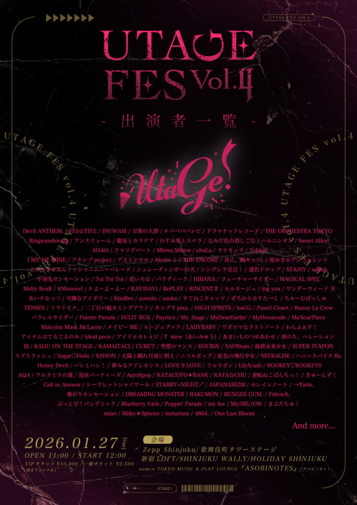 「UTAGE FES Vol.4」への出演が決定しました!